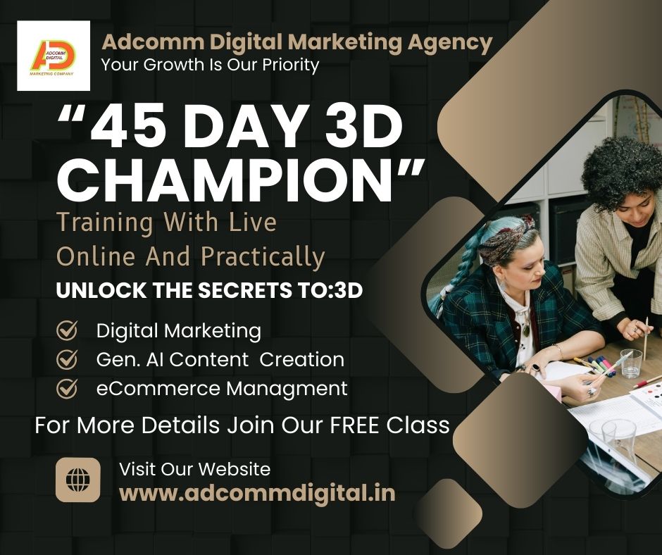 With Adcomm Digital’s 45 Days 3D Champion Training, you don’t just learn—you transform your skills into income streams.